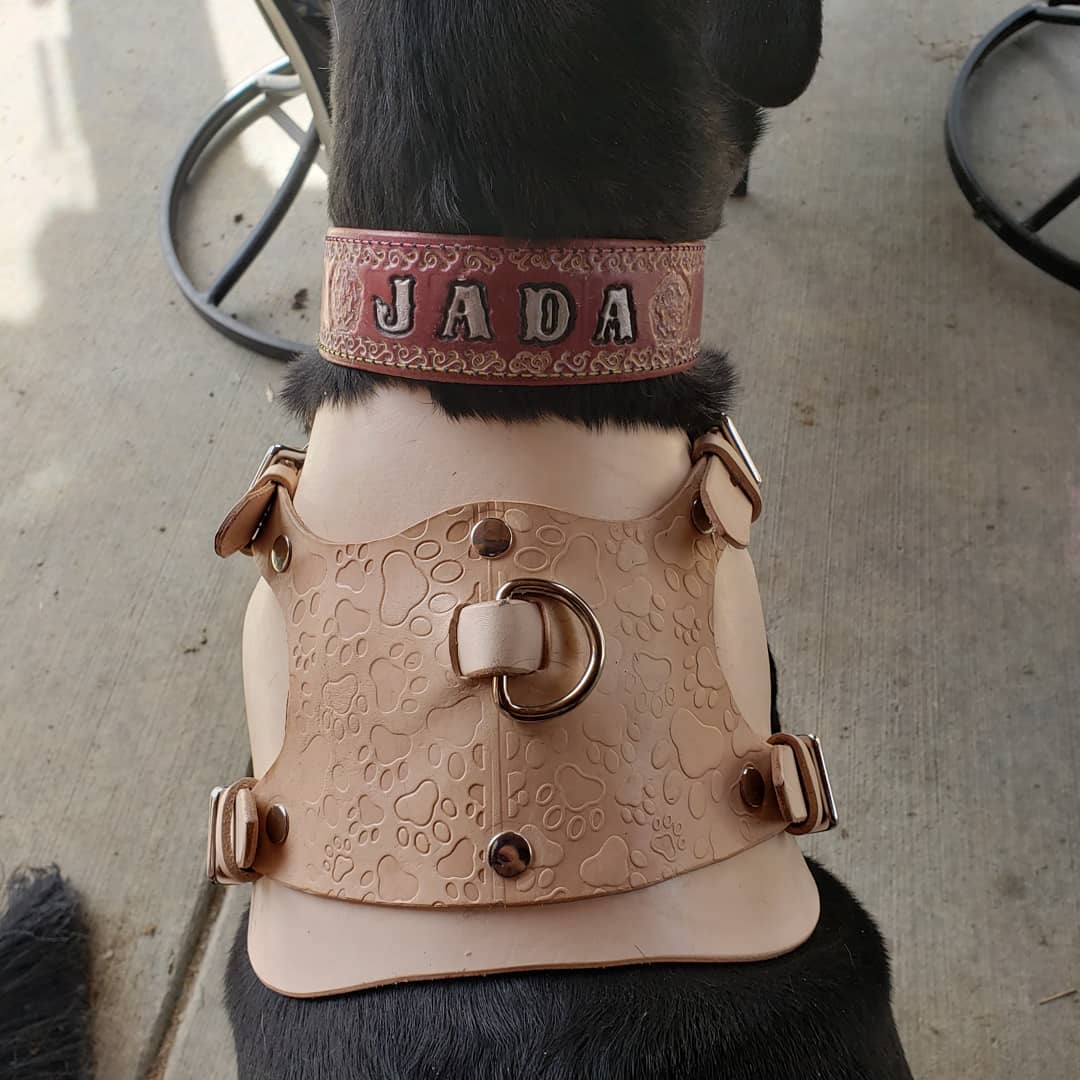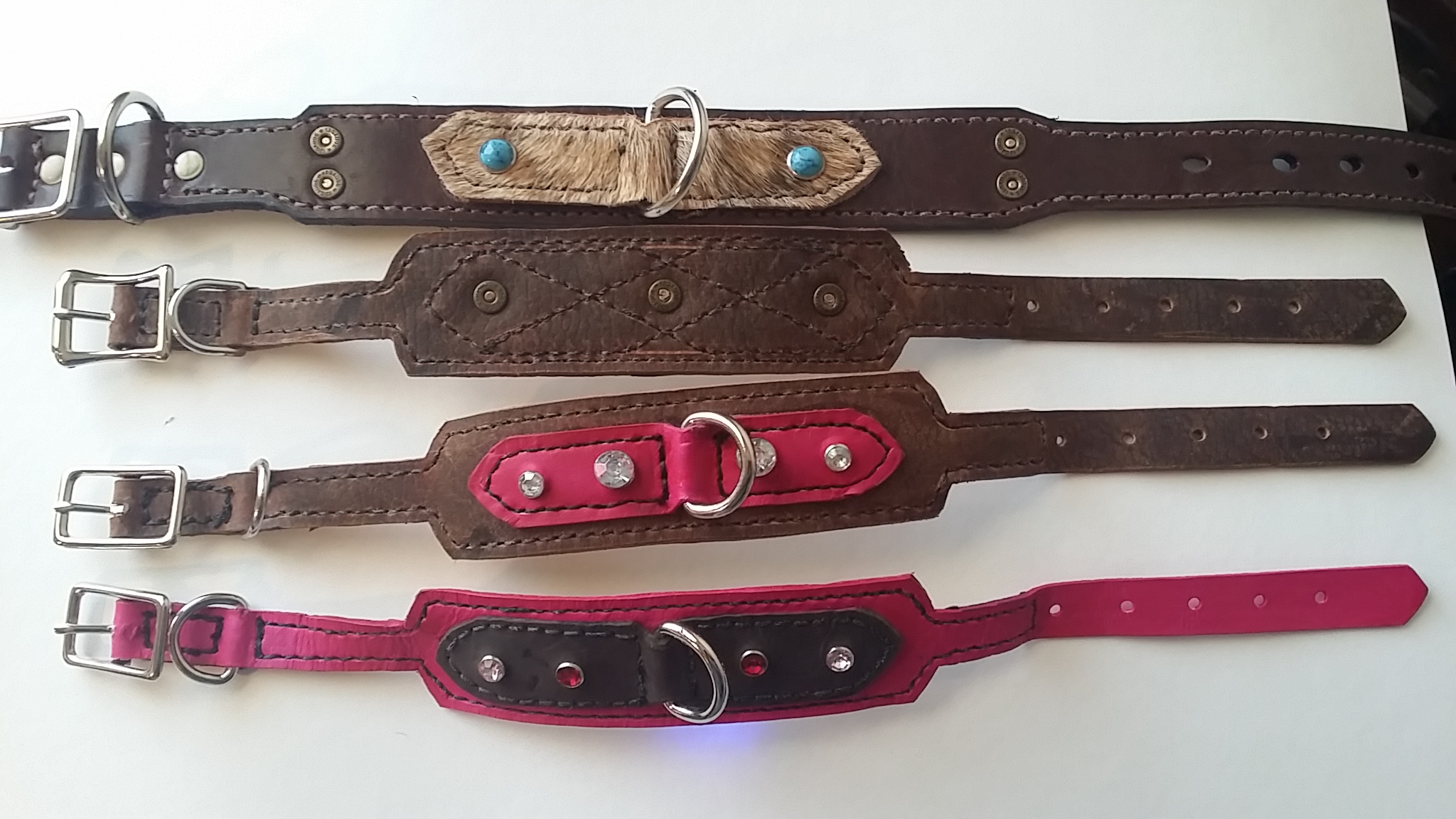 Each Collar & Harness is made to fit your dog, decorated & colored to meet their personality.